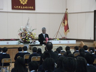 その後に、校長先生のお話、PTA会長の村嶋さんのお話を聞きました。