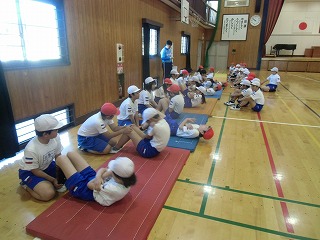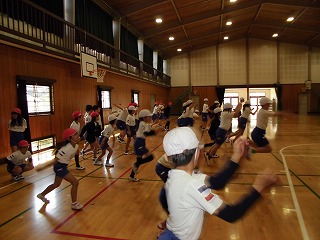 体育館で体を動かしました。