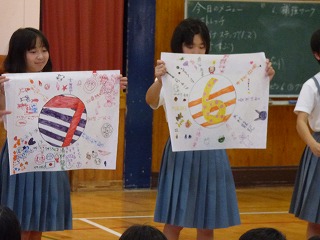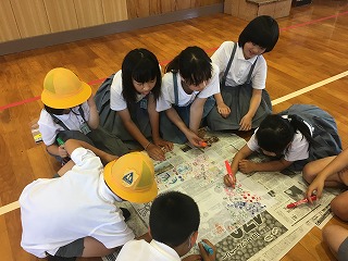 5,6年生がリーダーシップを発揮し、班の旗を作ります。