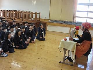 紙芝居で「はちべえ」の名前の意味を知り、生産者の思いを学びました。