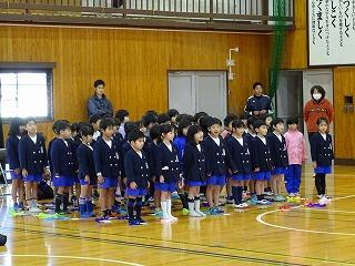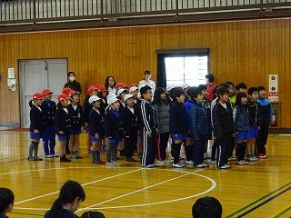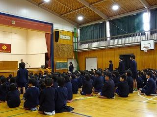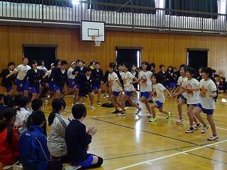 5年生は、中学校でもがんばれ!という気持ちをこめて、即席応援団による「エール」