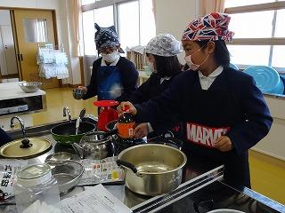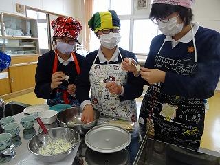 今日は3年生がトマト料理に挑戦しました。「はちべえとまと」の生産者のみなさんに教えて頂きました。