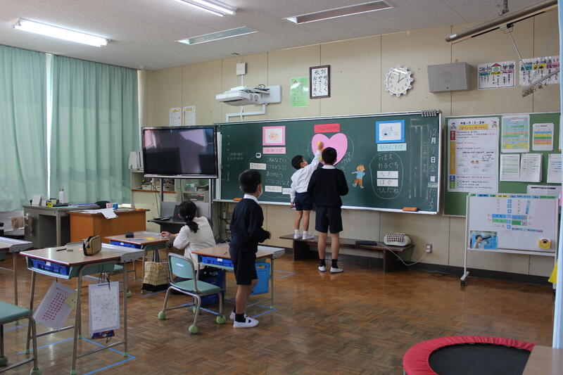 早速声をかけたり、昼休みに一緒に遊ぶ子ども達の姿が見られました。自分たちからどんどん関わりを持ち、仲を深めていってほしいです。