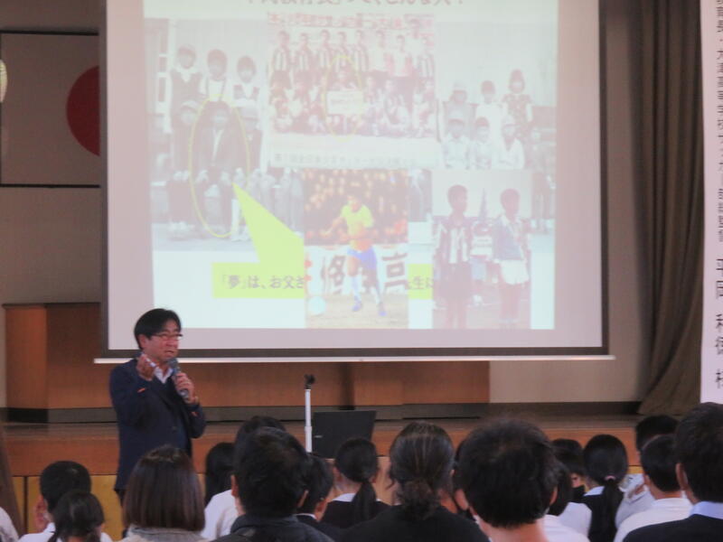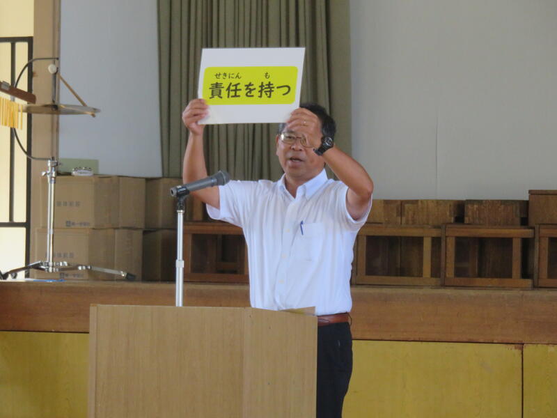 続いて、生徒指導の増渕先生のお話です。みんなは前期にできるようになったことは「無言掃除」です。
