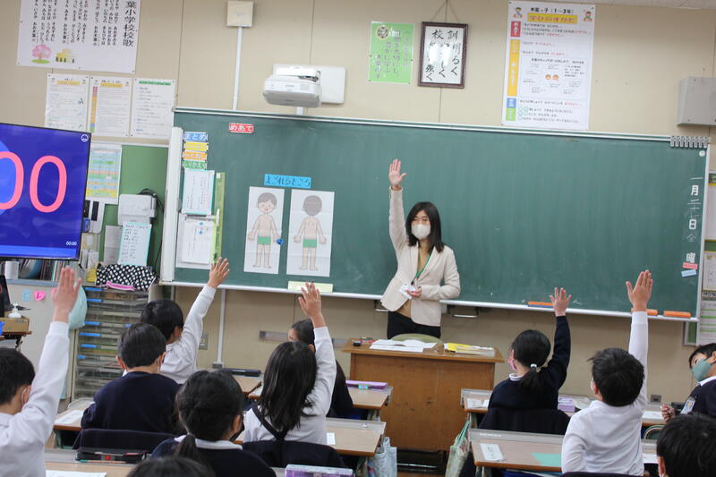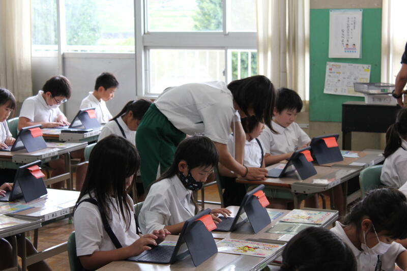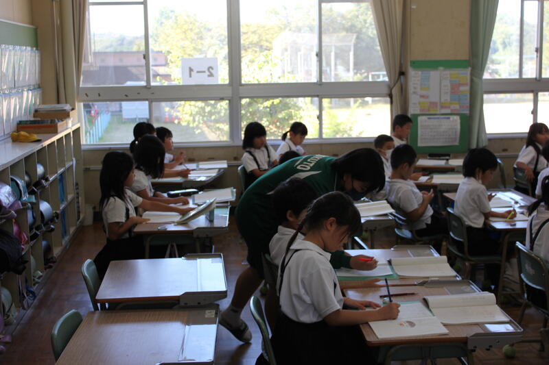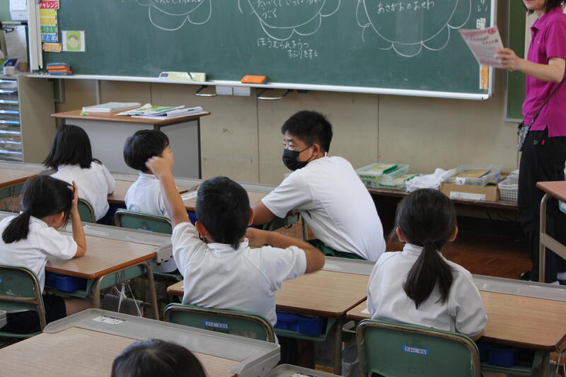 授業に参加して担任のサポートをしたり、子ども達と楽しそうに遊んだり、丸付けや簡単な業務を体験したりと、積極的に活動する姿を見せてくれました。