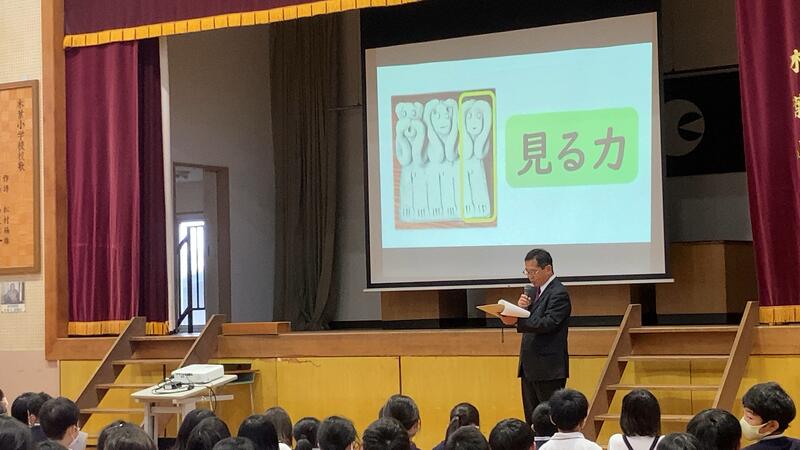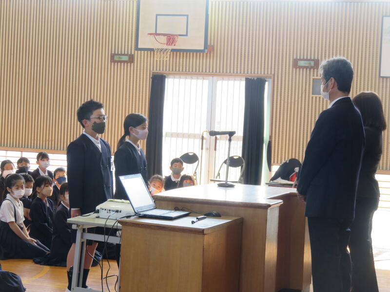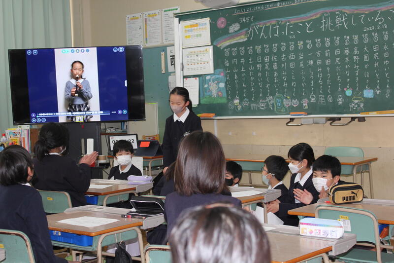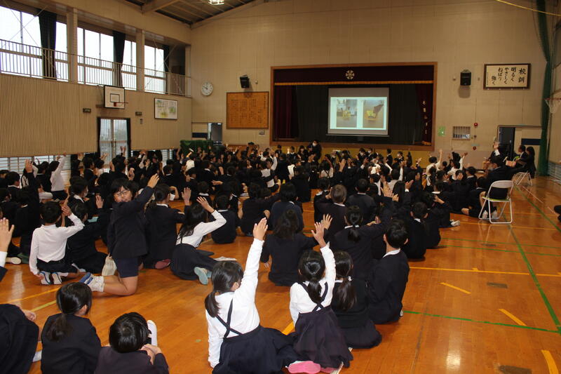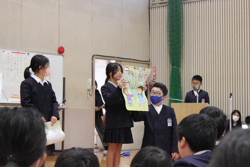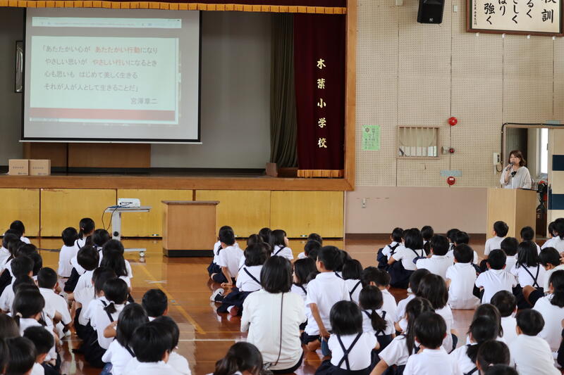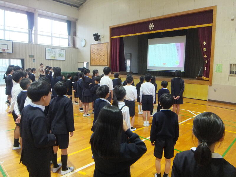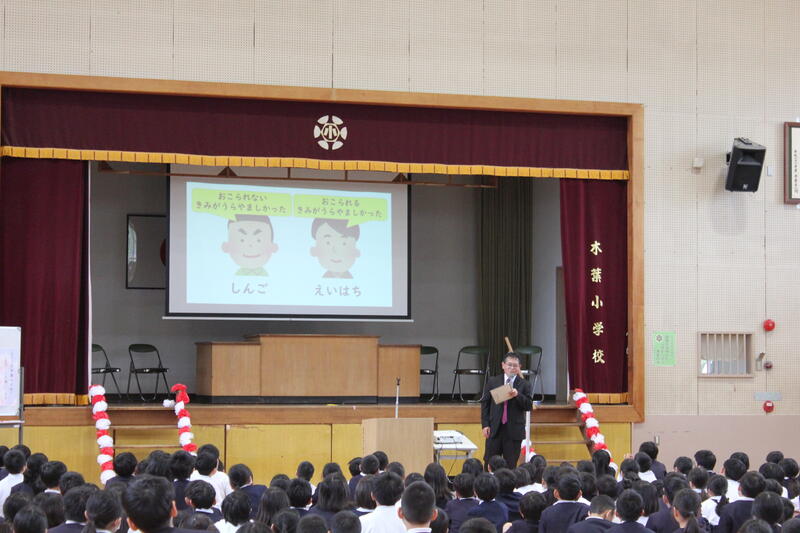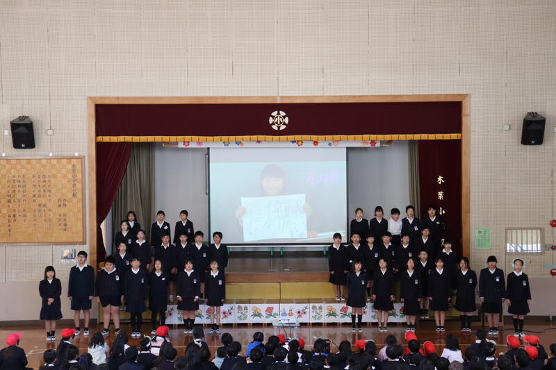 校長先生の話の中で、木葉小の今年のめあて「自分や友達の考えを大切にしながら学習する木葉の子」について振り返る時間がありました。子供たちは、自分の考えを周りに伝えたり、友達の考えを受け止めたりと、多様な考え方に触れながら、一緒に学び、日々成長しています。
