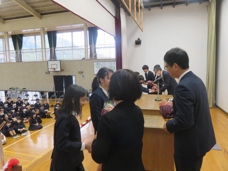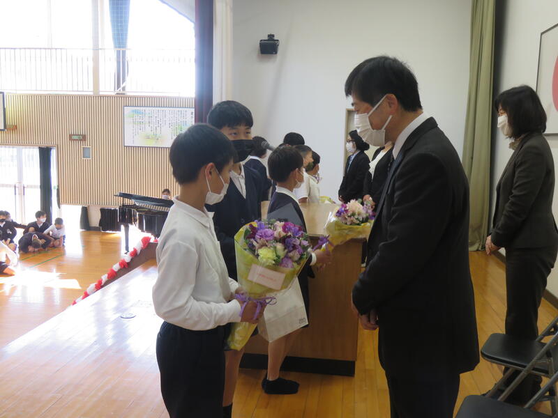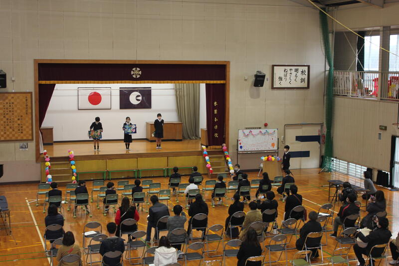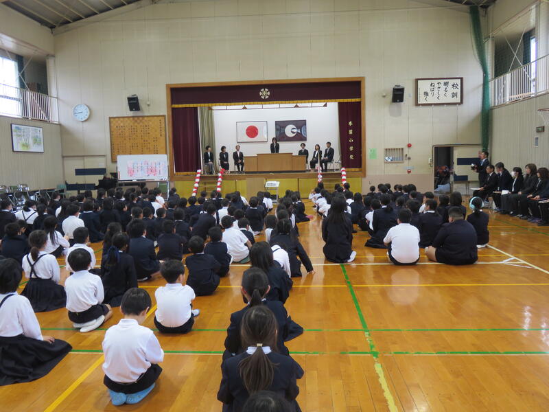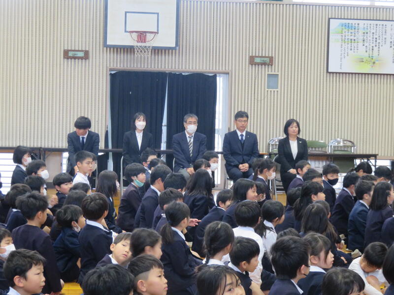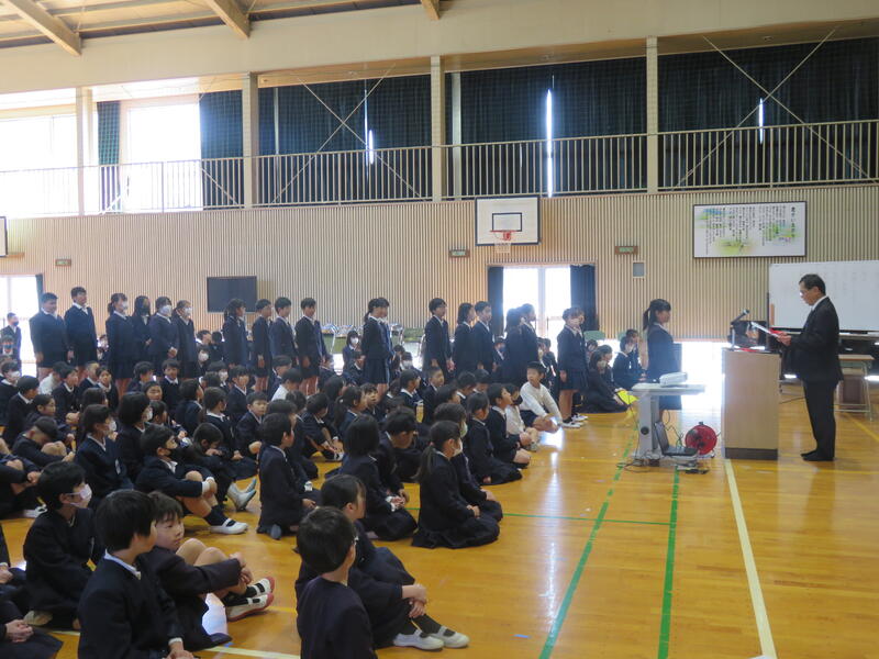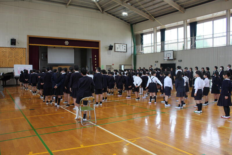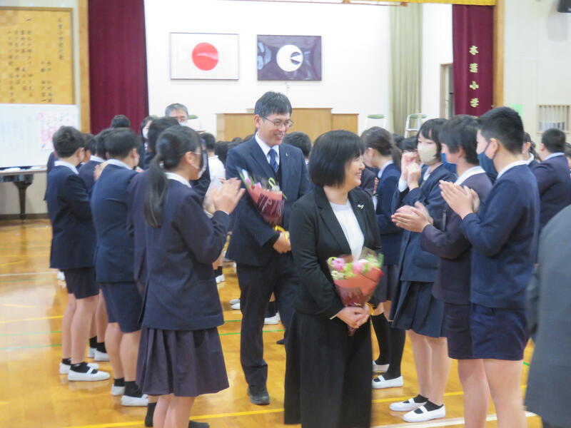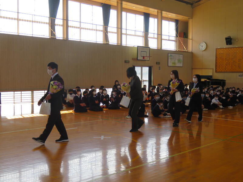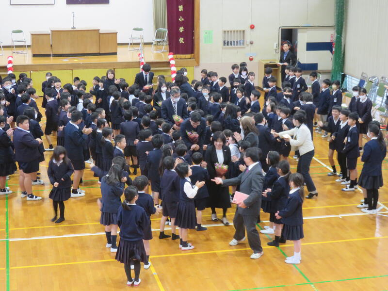 3月28日(金)、退任式を行いました。今年は、4名の先生とのお別れになりました。子供たちは、先生方の話の別れの言葉をしっかりと聞き、別れを惜しんでいました。最後に全校児童で道を作り、退任される先生方を拍手で見送りました。