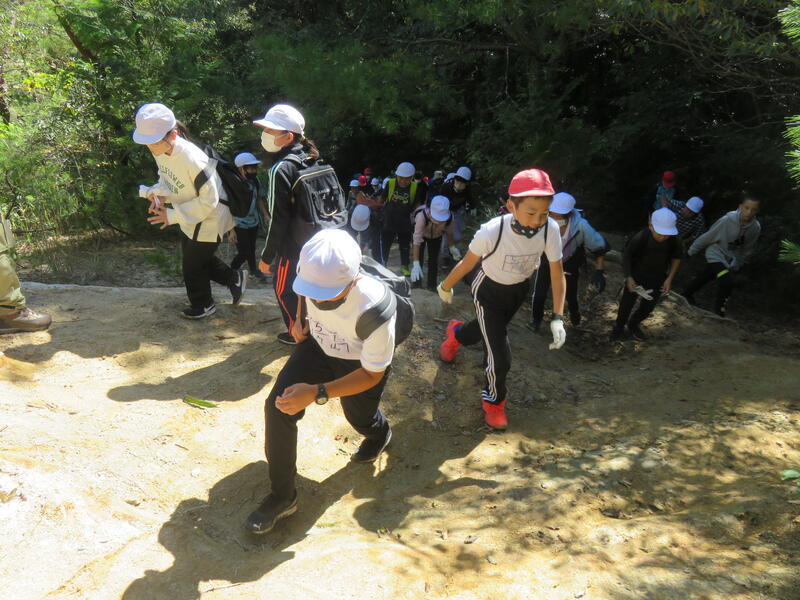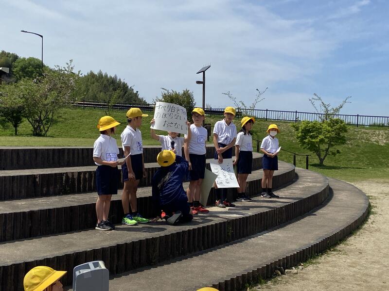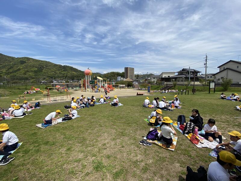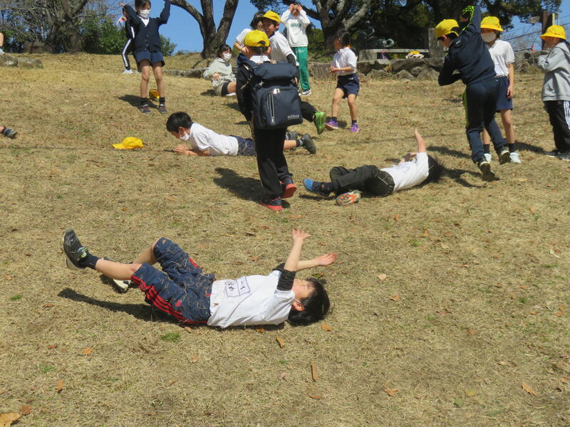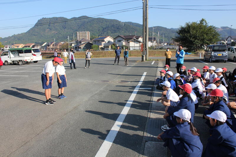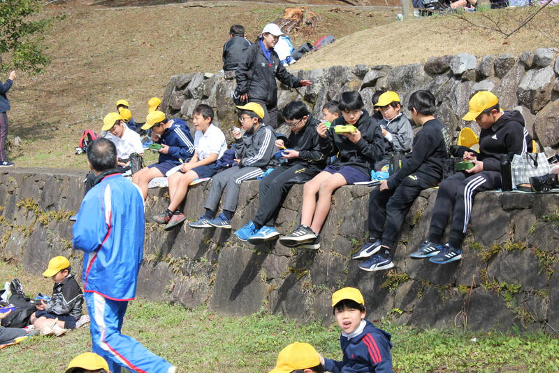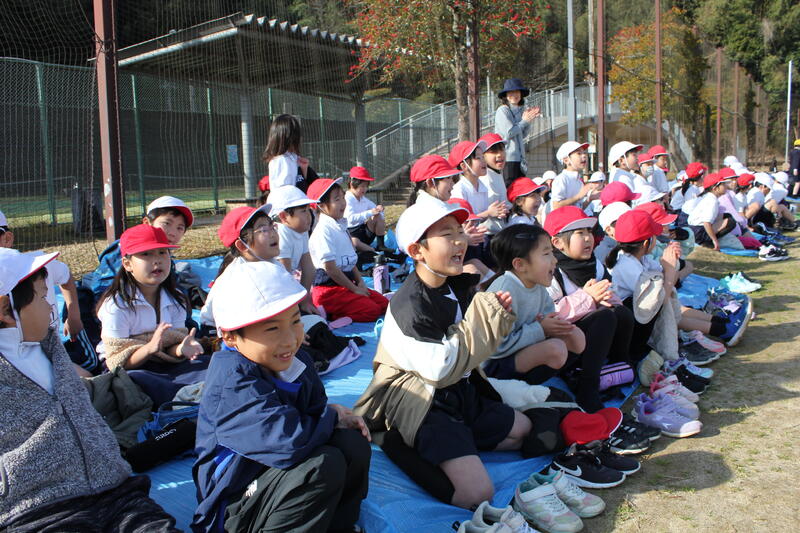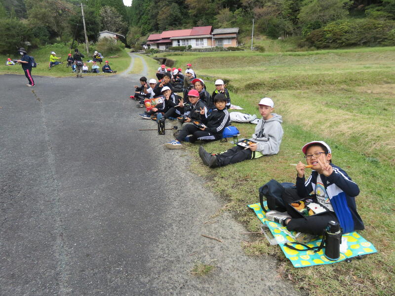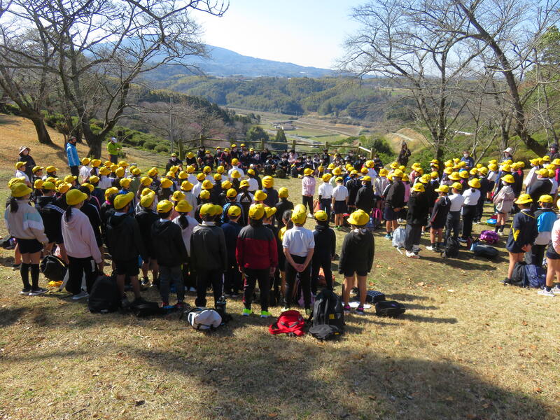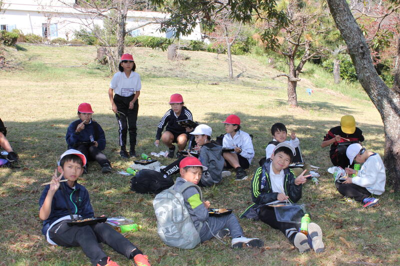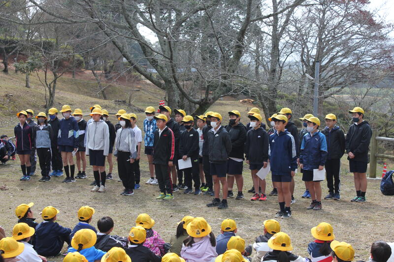 本番では、6年生に喜んでもらうことができて大満足の下級生たち。田原坂まで一緒に歩き、縦割り班で6年生と一緒にお弁当を食べることができて最後に素敵な思い出ができました。