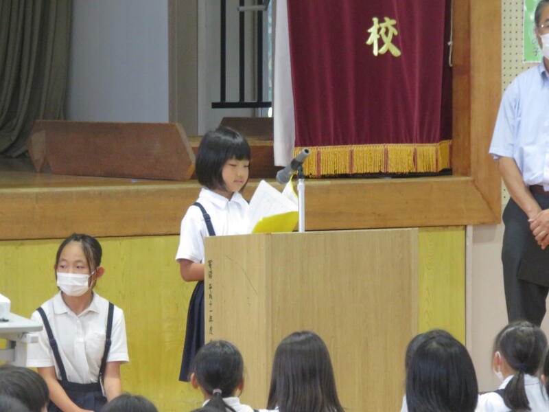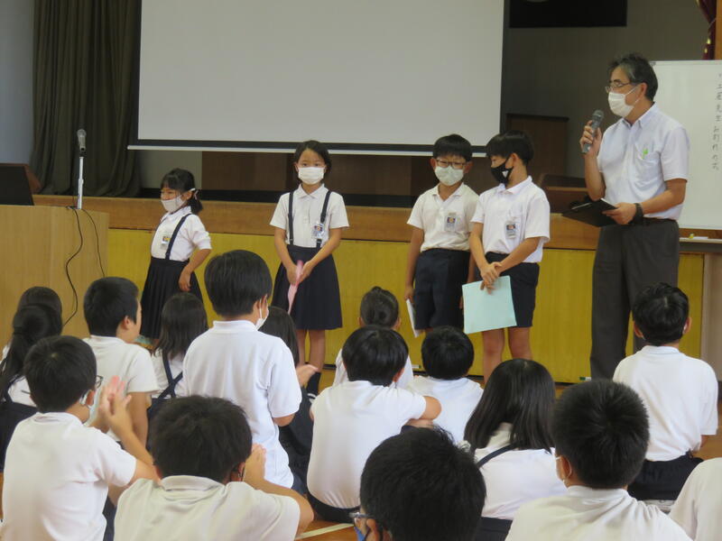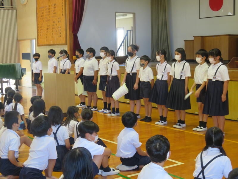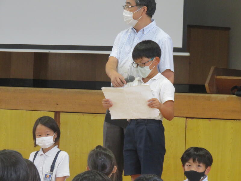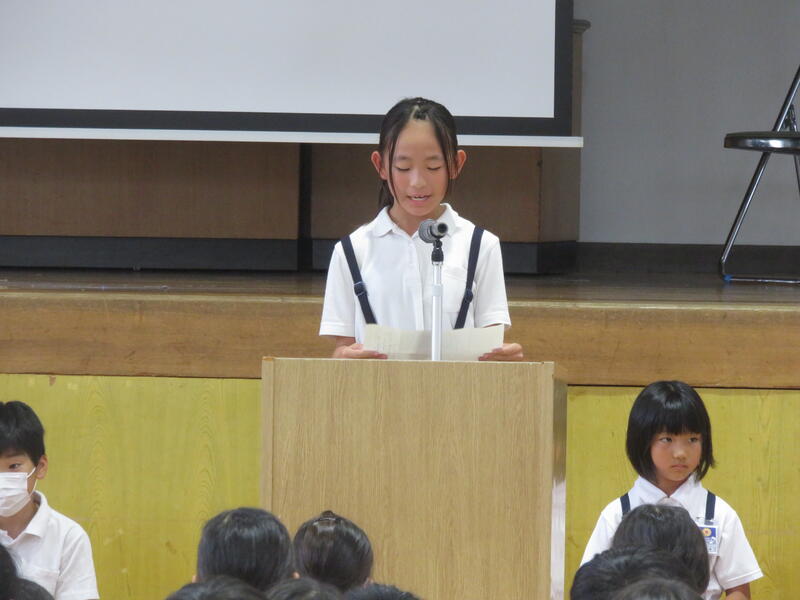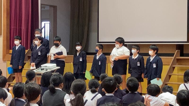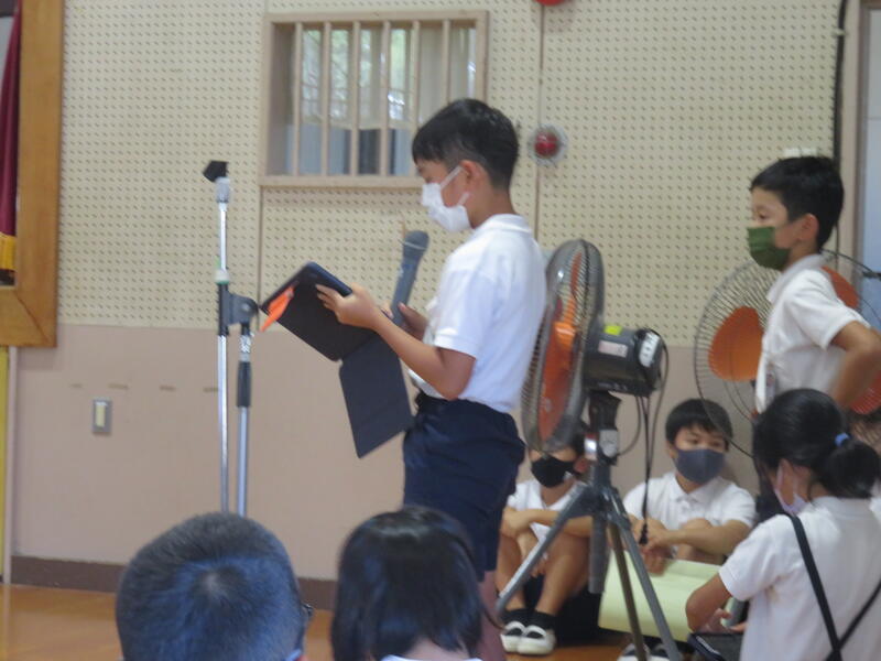 まず、1、3、5年生の児童代表による「前期の振り返り」の発表でした。