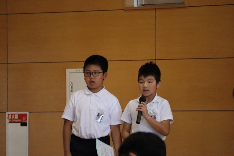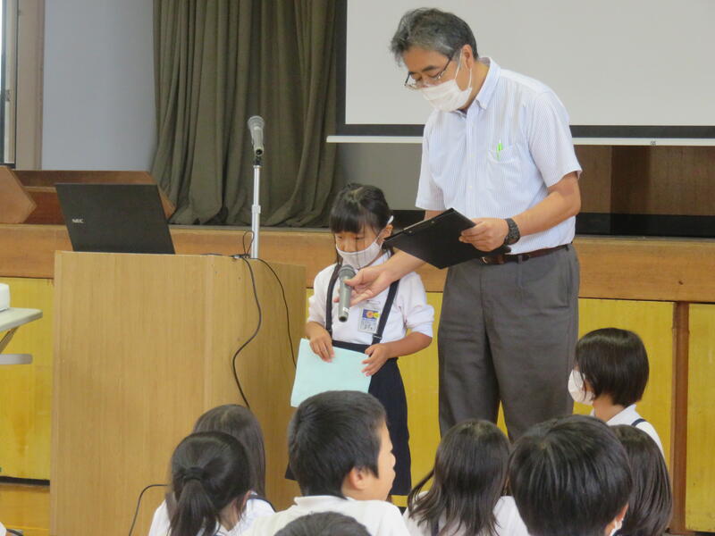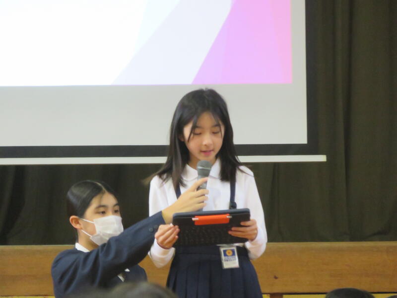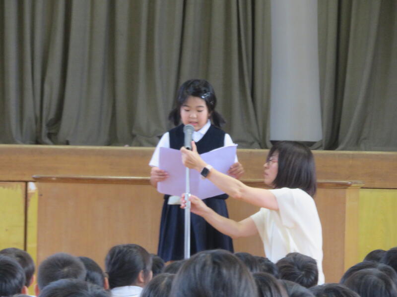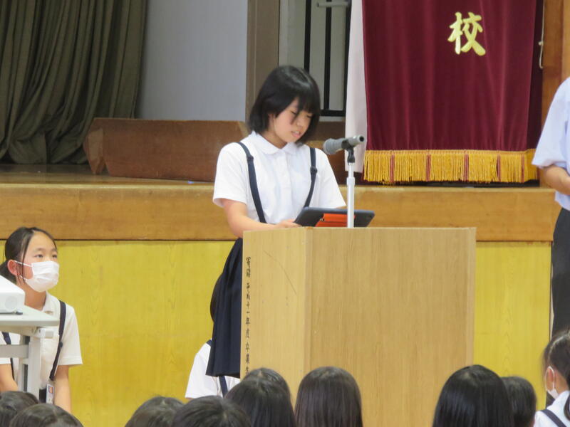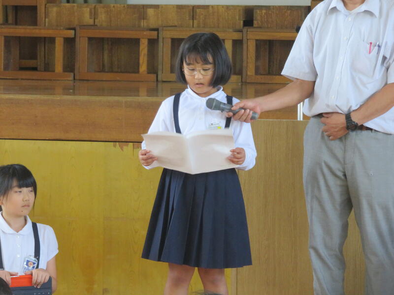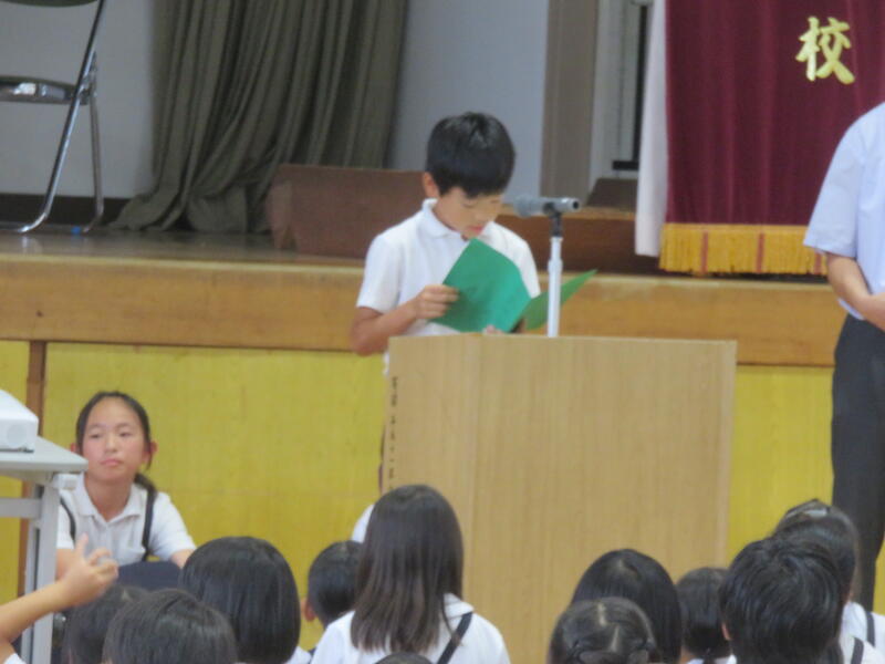 まず、1、3、5年生の児童代表による「前期の振り返り」の発表でした。