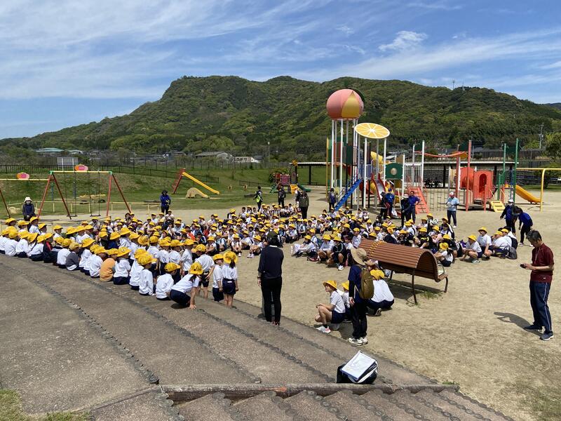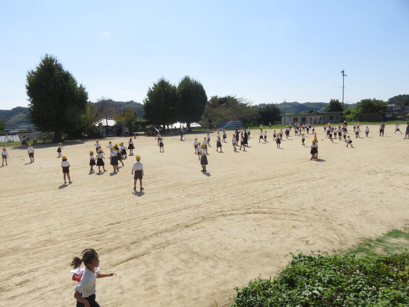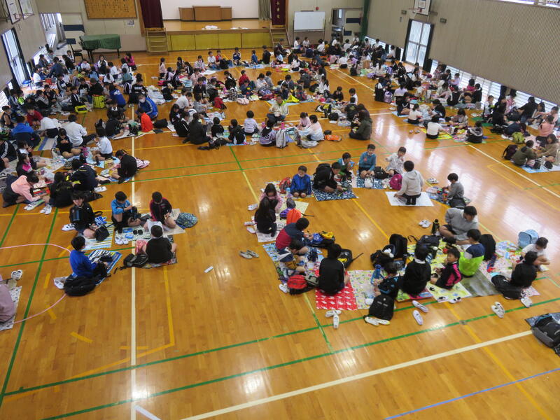 各学級、静かにすばやく避難し、集合場所に集まることができました。