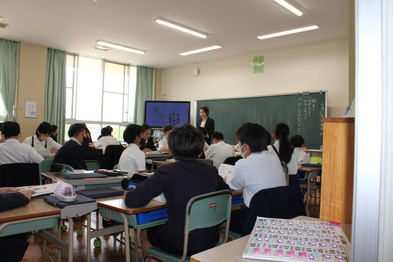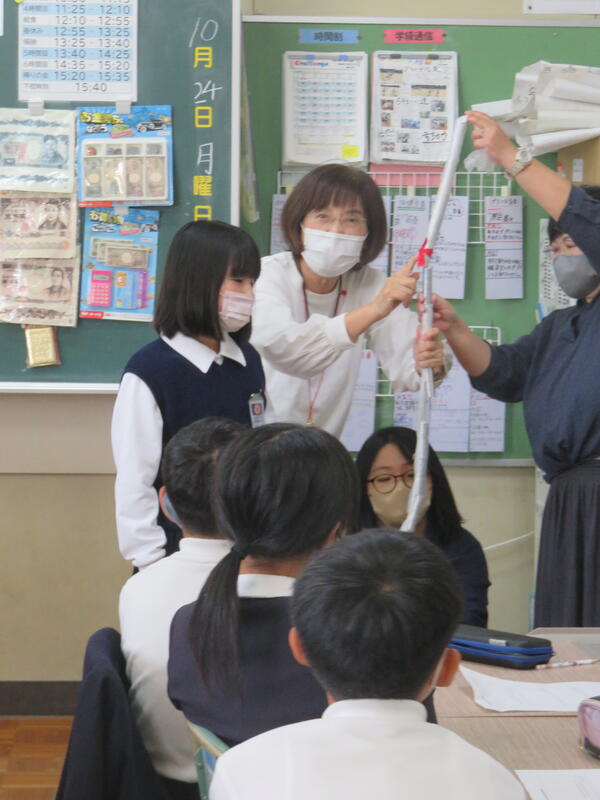 10月17日(月)に町の社会福祉協議会の方に来ていただき、社会福祉体験を行いました。今回の福祉体験では、目の不自由な方々のことについて学びを深めました。