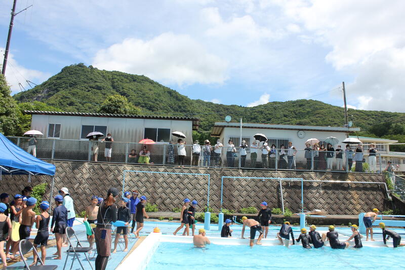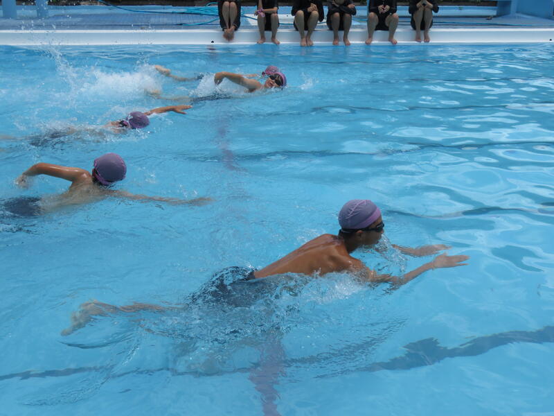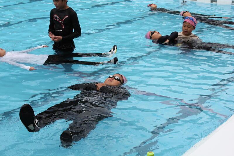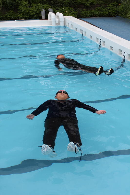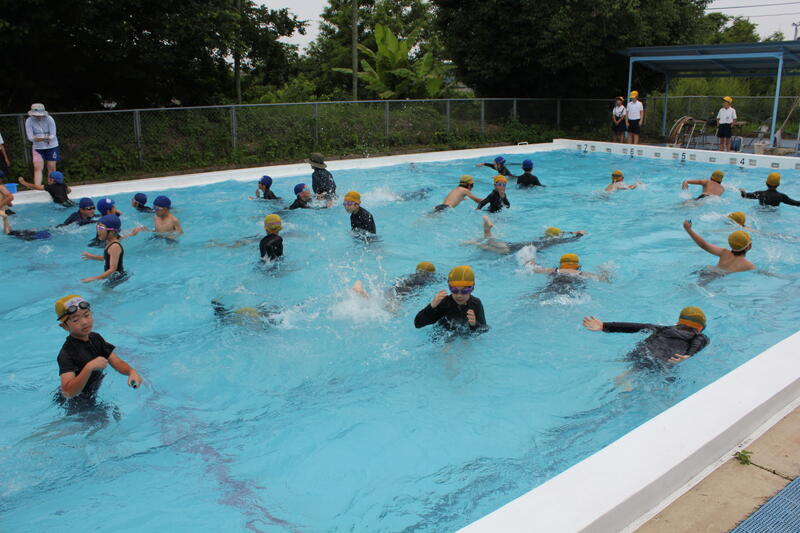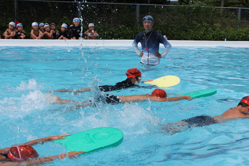 水泳の練習をがんばって25m泳げるようになりました。サッカーもがんばっています。
