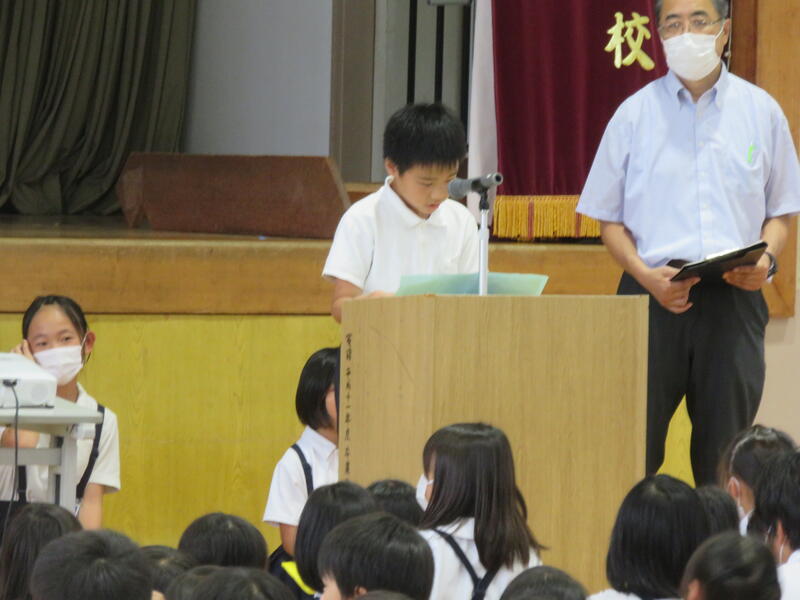 今年度の前期は、98日間(1年生は97日間)でしたが、始業式、入学式の日と今の自分を比べてみると、心も体もぐんと大きくなっているのではないでしょうか。今の自分を見つめ、これからの後期に向けてどのように目標を立てるかが大事です。後期も木葉っ子の成長を楽しみにしています。