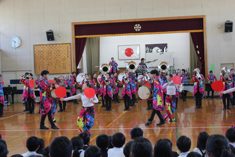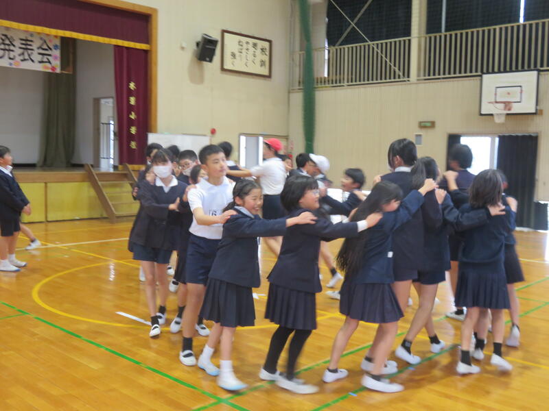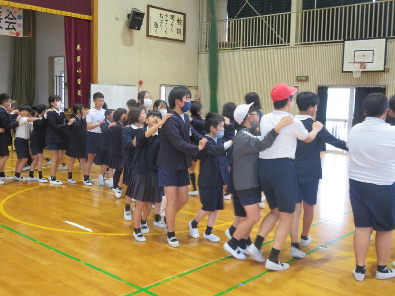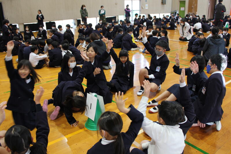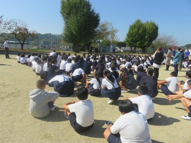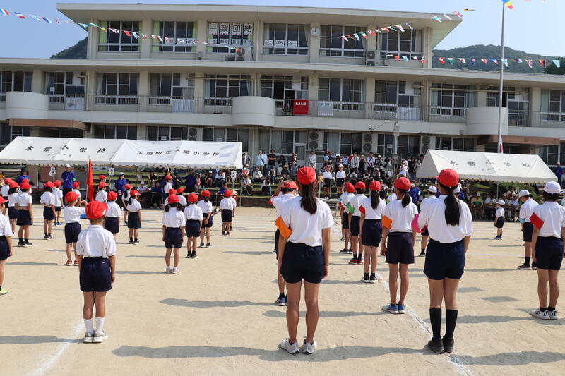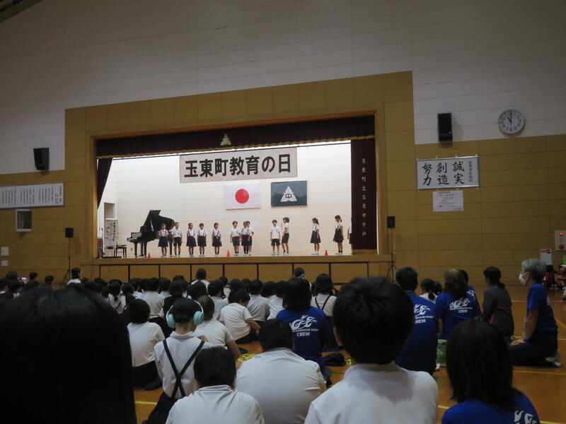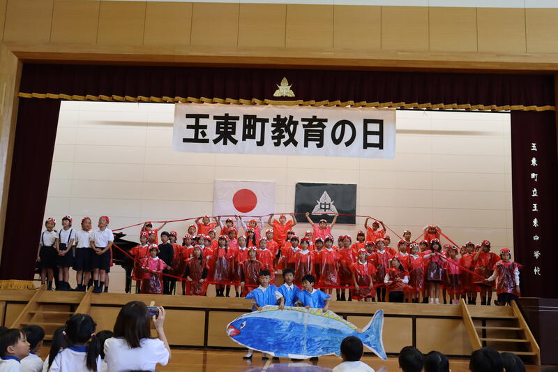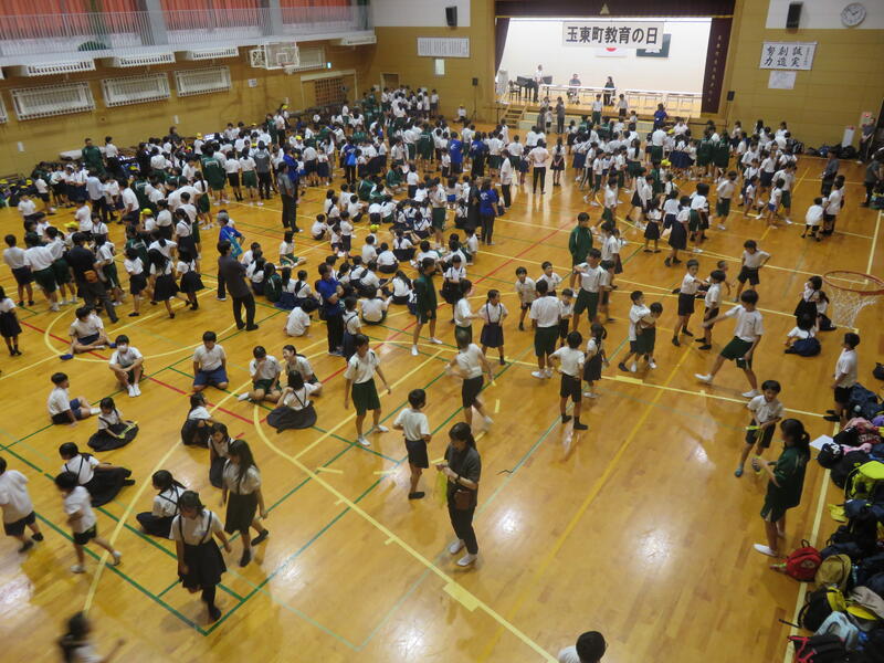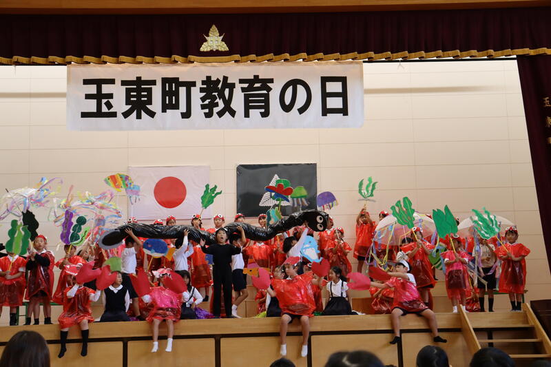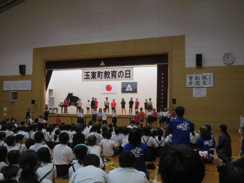 10月18日(金)、玉東町教育の日が行われました。玉東町の2つの保育園、2つの小学校、1つの中学校が一堂に会して、代表学年による発表や縦割り班遊びを行いました。