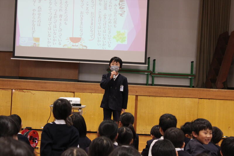 会の司会進行、はじめの言葉やおわりの言葉もすべて2年生の子ども達が頑張りました。