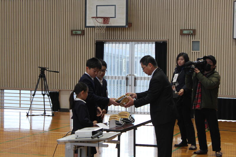 野球では、大谷選手からいただいたグローブを使ってキャッチボールをしました。これは、6月に行った代表委員会で決定したことで、出場選手は、グローブを使ってキャッチボールを楽しむことができました。