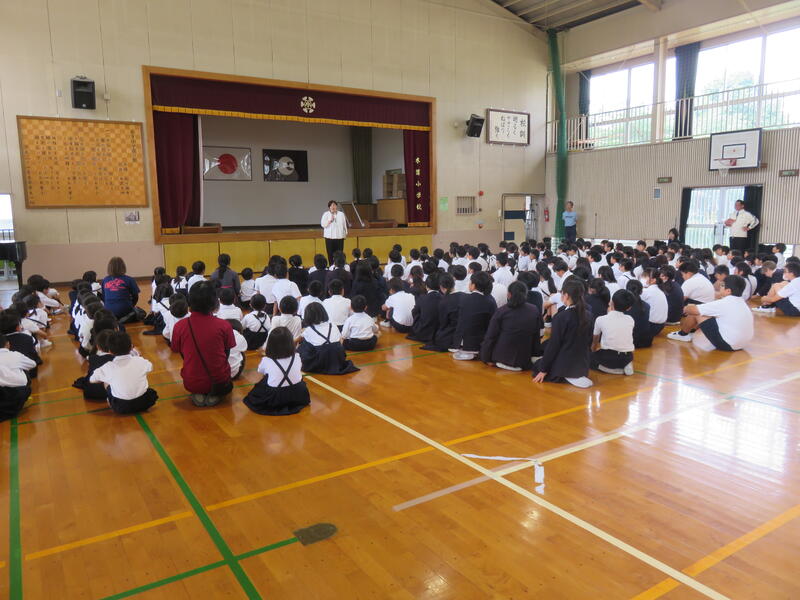 そこで、JICA(国際協力機構)の方に来ていただき、多文化共生についてのお話を全校児童で聞きました。