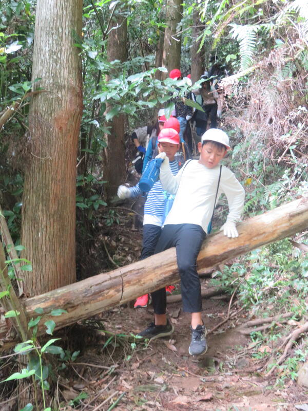 2日目はハイキング。険しい山道を友達と協力しながら進み、天狗杉を目指しました。