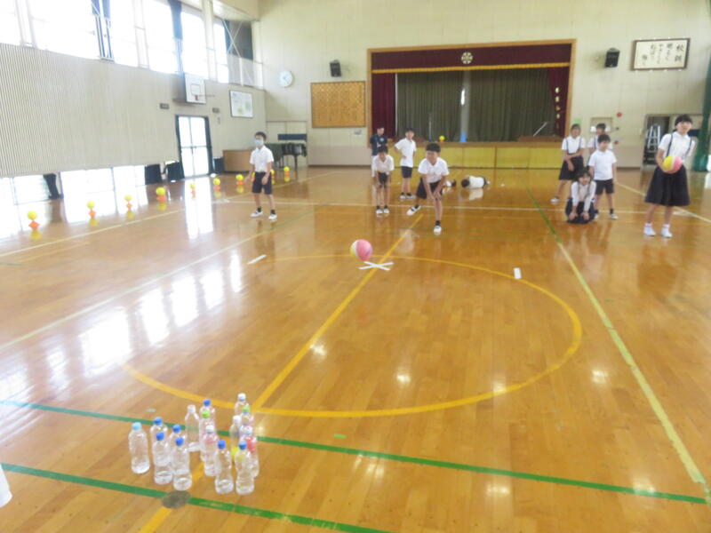バスケットやサッカーはゴールに入った本数、障害物競争やなわとび(持久跳び)は時間、野球はキャッチボールできた回数、ボウリングは倒したピンに書いてある合計点数で競いました。