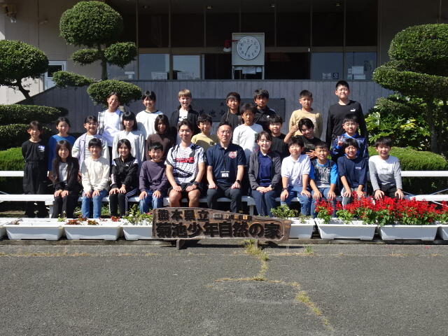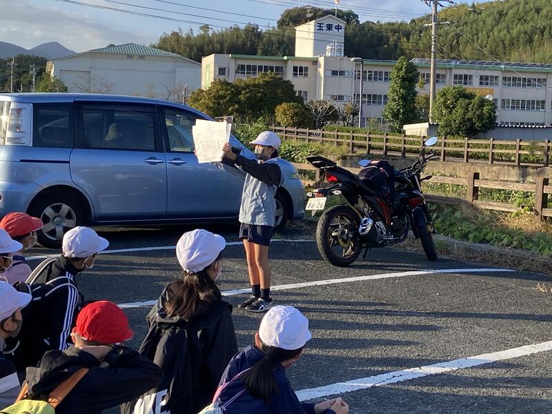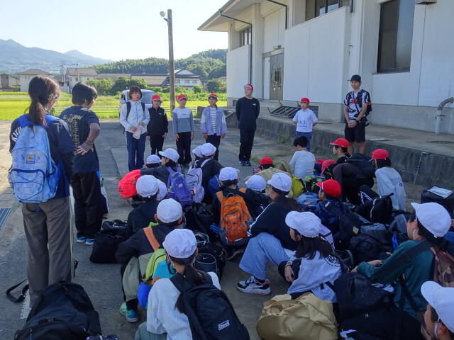 玉東町中央公民館で出発式を行い、めあてを確認しました。