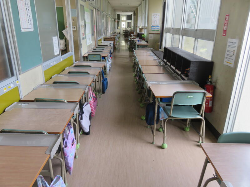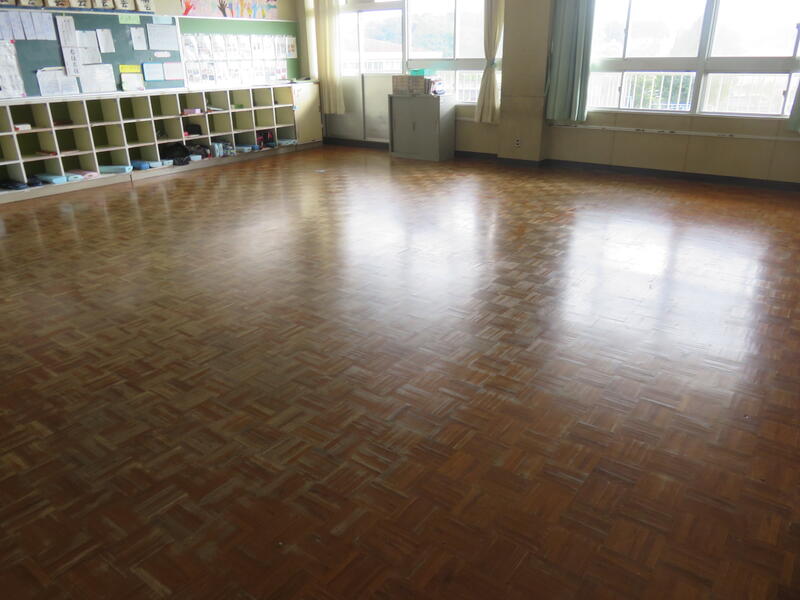 今日は、ワックスがけのために教室の机椅子などをろうかに出しました。11日には、ワックスがけで綺麗になった教室で、気持ちよく新学期がスタートできそうです。