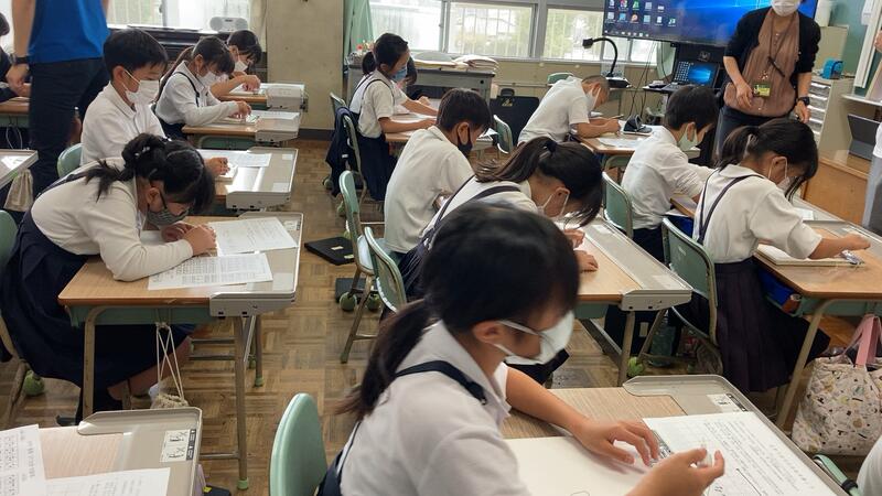 実際に点字を打ってみて、子ども達は、「あいうえお表から、文字を見つけて難しかった。」「今後もあいうえお表を見て、読めるようになりたい。」など、それぞれ感想を持つことができました。