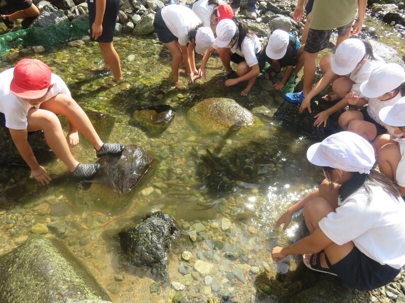 ニジマスつかみでは、命をいただくことの大切さ、命を育む自然の偉大さを感じ、感謝しておいしく食べる子どもたちの姿が見られました。