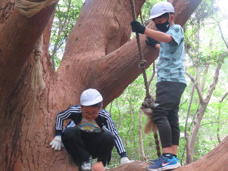 樹齢400年の「天狗杉」に登ったり、触れたりしてパワーをもらいました。