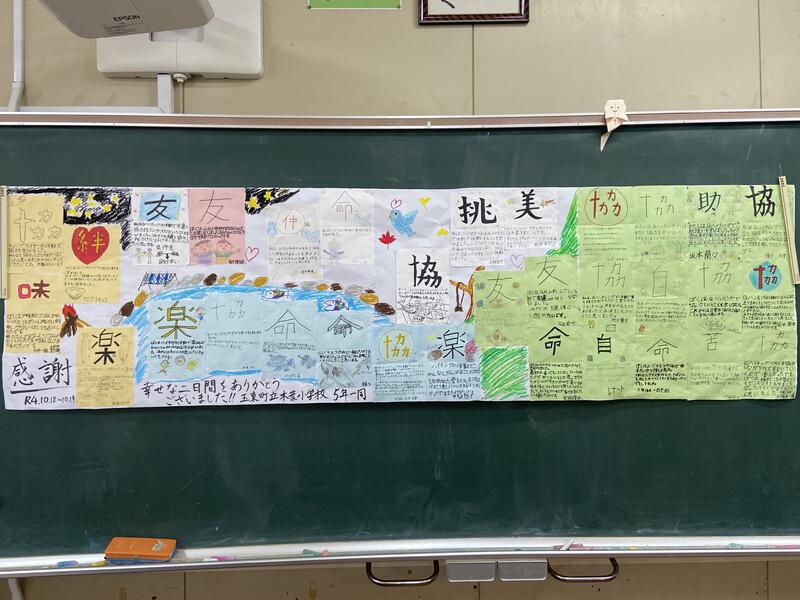 子どもたちが2日間で感じたことを1文字の漢字に表しました。1番多かったのは「協」です。友達と協力したことが心に残ったようです。子どもたちが書いたものは、少年自然の家に送りました。少年自然の家に1年間掲示されるそうです。
