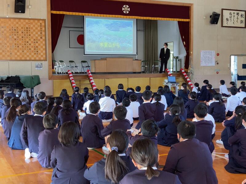 歓迎の挨拶は、計画委員会の2人からでした。木葉小学校の良いところを紹介することができました。