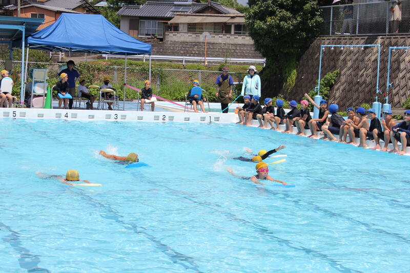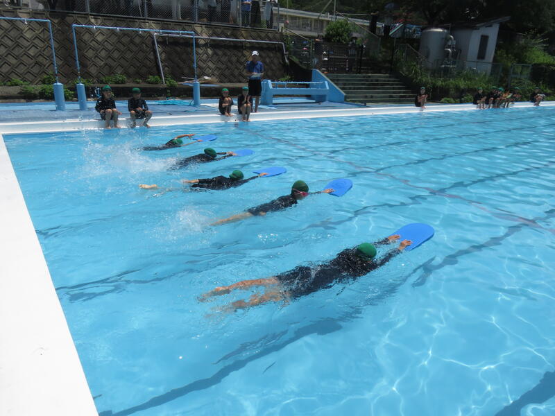 水泳の練習をがんばって25m泳げるようになりました。サッカーもがんばっています。