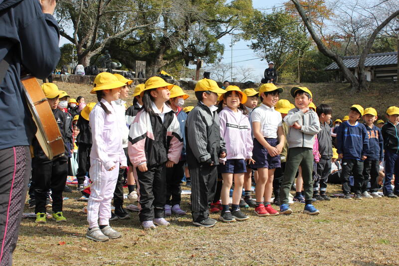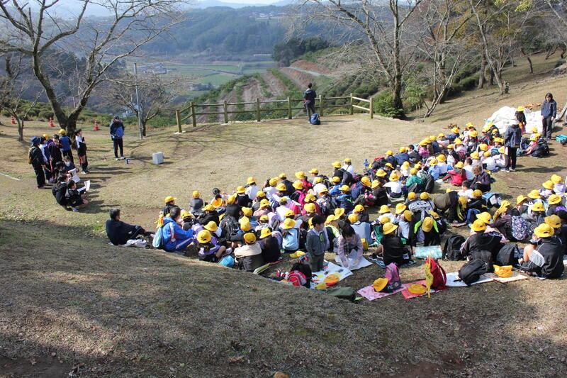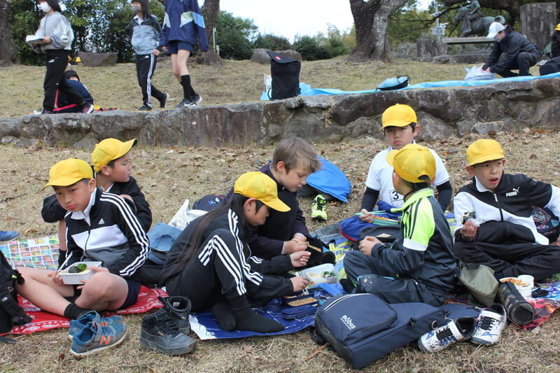 本番では、6年生に喜んでもらうことができて大満足の下級生たち。田原坂まで一緒に歩き、縦割り班で6年生と一緒にお弁当を食べることができて最後に素敵な思い出ができました。