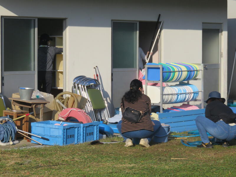 今日は、ワックスがけのために教室の机椅子などをろうかに出しました。11日には、ワックスがけで綺麗になった教室で、気持ちよく新学期がスタートできそうです。
