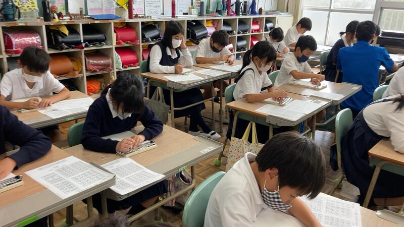 10月17日(月)に町の社会福祉協議会の方に来ていただき、社会福祉体験を行いました。今回の福祉体験では、目の不自由な方々のことについて学びを深めました。