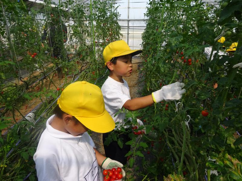 23日(水)、2年生の児童がミニトマトハウス見学・町探検に行きました。ハウスいっぱいのミニトマトに興奮気味の子どもたち。2000本以上のミニトマトの苗があること、水やりがとても大変であることなどお話も聞かせてもらいました。収穫の仕方も教えてもらい、取れたてのミニトマトを食べ、「これ甘くておいしい!」と大喜びでした。帰りには、パックいっぱいにミニトマトを収穫させていただきました。