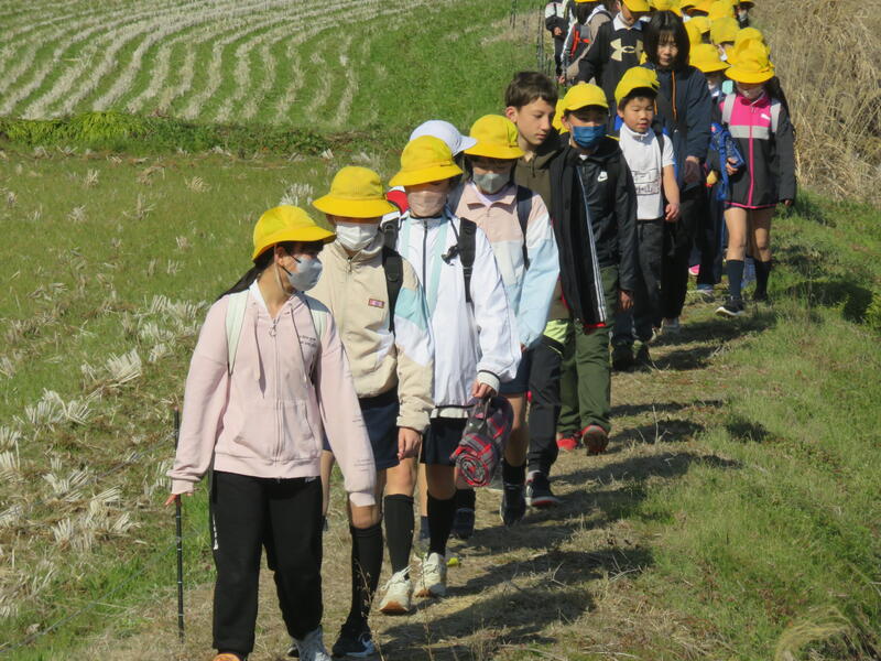 3月3日(金)送別遠足を行いました。久しぶりに田原坂公園へ全校児童で行くことができました。片道約5kmの道のりは、狭い道あり、長い坂道ありで大変でしたが、みんなで声をかけ、励まし合いながら進むことができました。田原坂公園に到着後、送別集会を行い、在校生から6年生へよびかけの言葉や歌のプレゼントを贈ることができました。その後、6年生からのお礼の言葉と卒業式で歌う「旅立ちの日に」を聴き、在校生も喜んでいました。あこがれの6年生ともうすぐ離れるのは寂しいですが、限られた時間を一緒に楽しく過ごしたいですね。