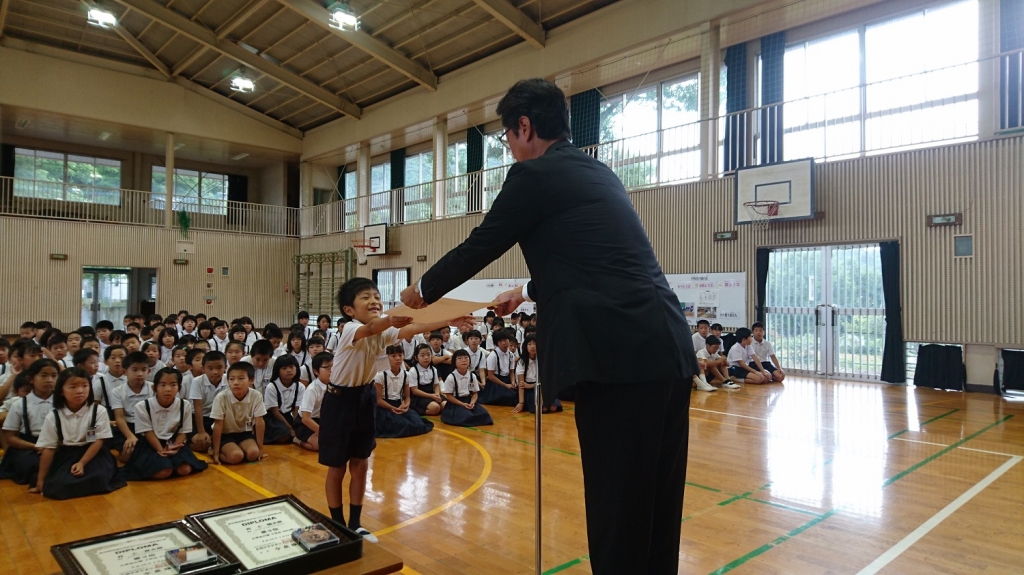また、夏休み中に童話発表会や、各スポーツ大会で活躍をした児童に表彰が行われました。