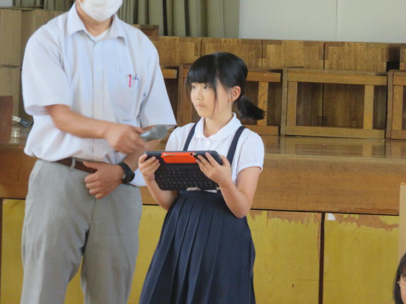 代表児童が、前期を振り返り、がんばったことや成長したこと、後期にがんばりたいことを発表しました。しっかりと自分の言葉で話すことができ、大変立派でした。