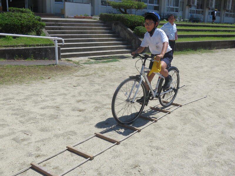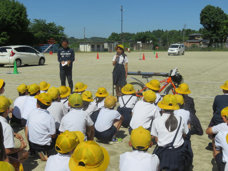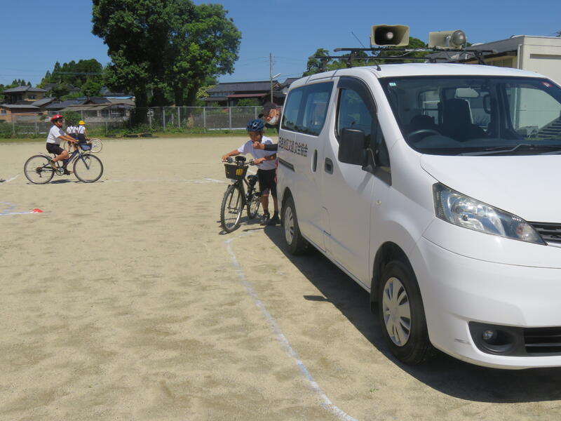 講師として、交通安全協会、役場、駐在所の方々をお招きし、1・2年生は道路の歩き方や横断歩道の渡り方、3~6年生は、自転車の乗り方を指導していただきました。