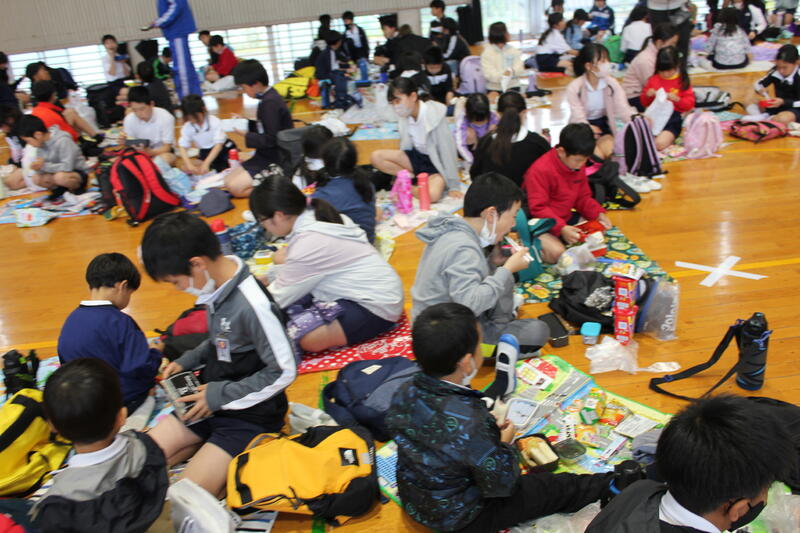 全校児童で体育館でお弁当タイムです。食後のおやつもあり、みんなとっても嬉しそうでした。