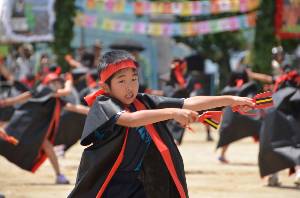 中学年の表現は、「よさこいソーラン」。法被と鳴子を持って、かっこよく踊っていました。