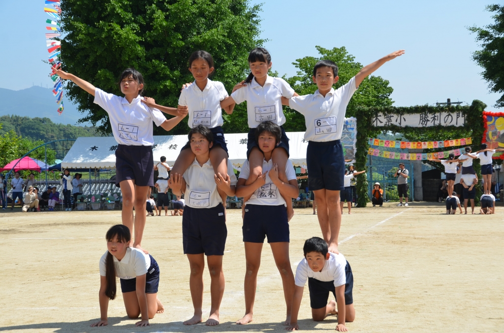高学年の表現は、「組体操 ~躍進2016~」。木葉小学校を引っ張るリーダーとして、素晴らしい演技を披露し、参観していただいた保護者の皆様や地域の方々から、たくさんの拍手を頂くことができました。