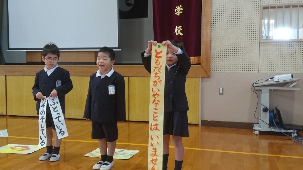 友達を大切にし、みんなが気持ちよく過ごすことができるように、各学級で学習したことを発表しました。それぞれの学んだことを大切にして、自分がやるべきことをしっかりと考え、行動してほしいと思います。