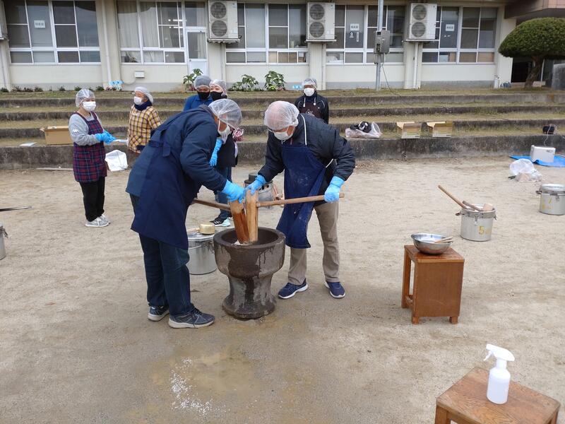 12月3日(金)の午前中、5・6年生が育てたお米を使って餅つきをおこないました。保護者の方にもたくさんの御協力を頂き、感染症対策に気をつけながら実施することができました。