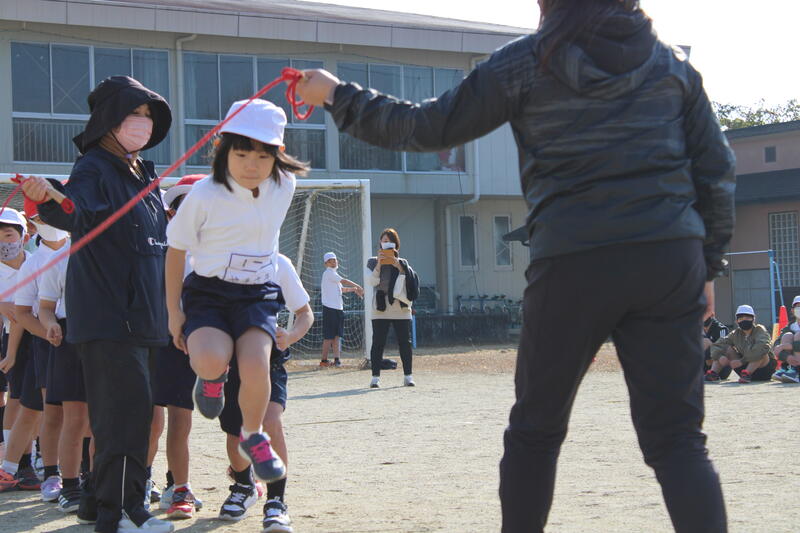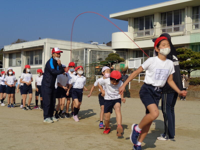 12月22日(水)に校内長縄競技大会を行いました。長縄大会は、3分間で8の字跳びを何回跳べるかを競います。クラスごとに目標記録を設定し、目標記録を越えることができたら『金賞』をもらうことができます。11月から、クラスごとに休み時間や体育の時間などに練習に取り組んできました。今までの練習の精かを発揮しようと、張り切って飛ぶ姿が見られました。