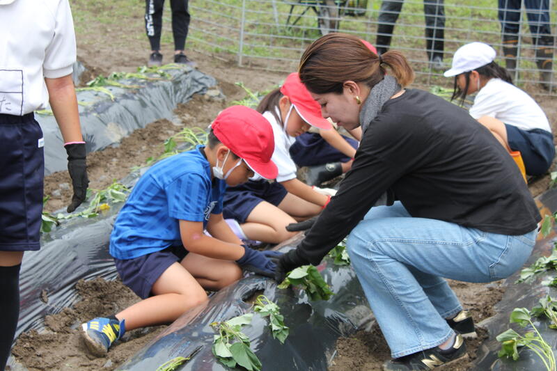 地域の方、保護者の方のサポートもあり、芋の苗植えをすることができました。これから収穫まで、芋が大きく育ちますように。