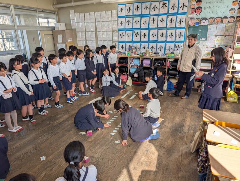 10日、1年生は生活科の学習で作ったおもちゃを使った遊びで地域の保育園児童と交流会をしました。みんなで楽しく遊び交流することができました。