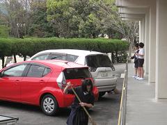 避難する時に注意することを確認しながらグラウンドや西側駐車場へ移動しました。