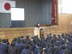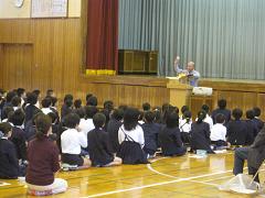 今日は全校集会でした。どの学年も、静かに入場していました。